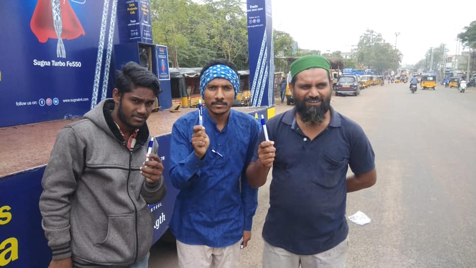 Sugna Turbo Fe550 had taken initiative to distribute pen and other gifting items to the common people across the villeges in Telangana. They roamed with the product display van in different parts of the villeges like mandals, bus station or some important places so that, people easily come and meet the team Sugna.