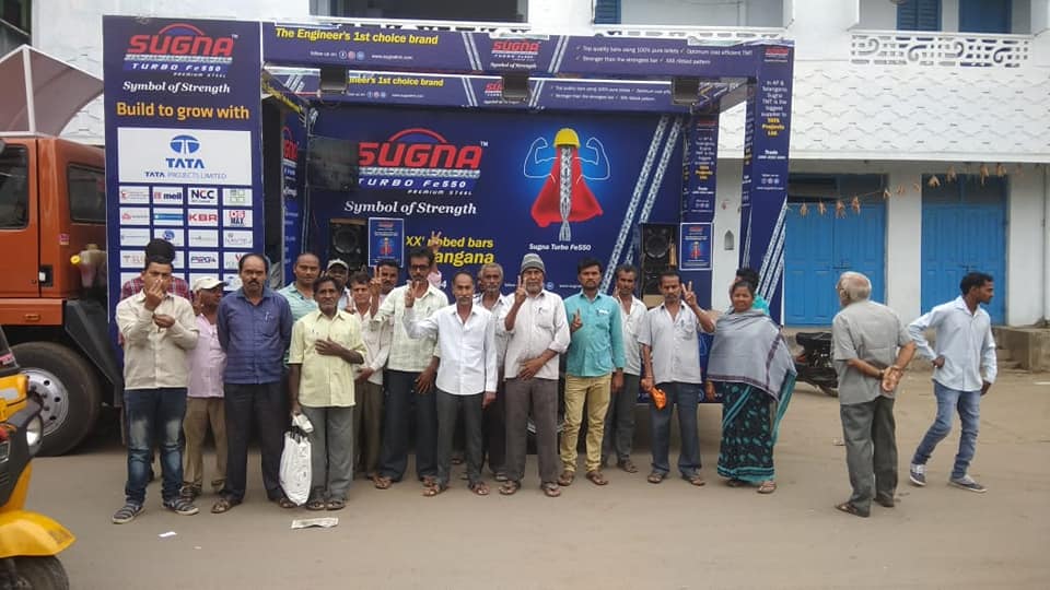 We were delighted to see the huge crowd in front of the product display van and people were sharing their opinion on the brand Sugna Turbo Fe550. They voted that Sugna is the most promising and admired TMT brand at the recent time.